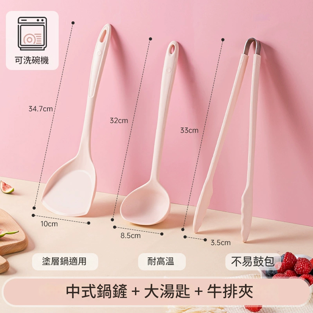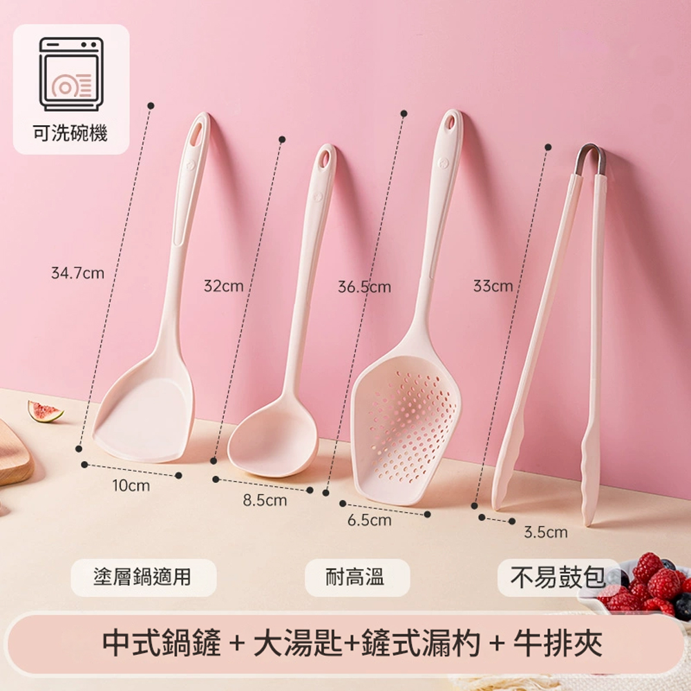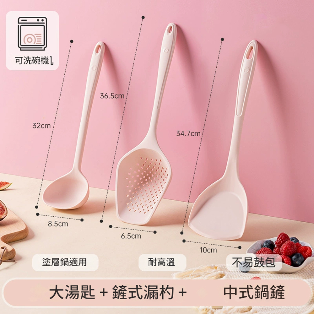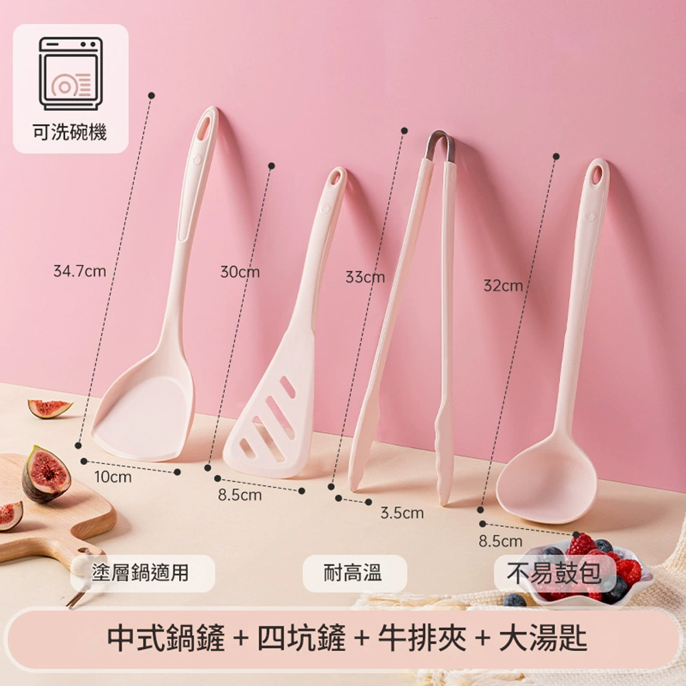 5Cgo【樂趣購】kochblume矽膠鏟子耐高溫鍋鏟3-4件套套裝不沾鍋家用湯匙豬豬粉色t670841468710