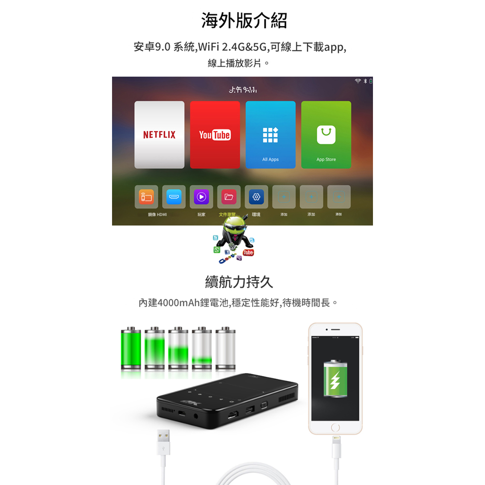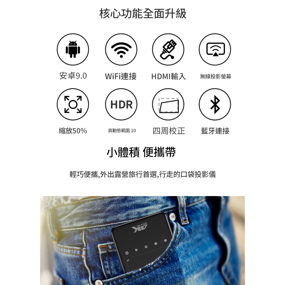 | | | | 商品名稱: | 5Cgo【樂趣購】蔓彤小型迷你投影機超薄超小高清迷你mini微型口袋掌上投影儀t758365051316 | | 商品尺寸: | 145*80*16mm | | 材質: | 金屬 | | 顏色: | 黑色 | | 出貨配件: | 投影儀 標配:14080元 套餐一:14790元 套餐二:15600元 | | 商品詳情: | 商品編號:t758365051316 ✨投影焦距類型:長焦 光學解析度:1920x1080dpi 整機功率:15W 儲存容量(ROM):32GB 語音遙控類型:不支援語音遙控 支援畫面比例:16:9 機體尺寸(mm):145x80x16mm 運行記憶體(RAM):2GB 是否有布幕自適應功能:不支援布幕自適應功能 適用場景:行動便攜 家庭劇院 智慧系統:Android(安卓) 套餐:官方標準配備 套餐二 套餐一 光源功率:15W 視訊介面:USB-C HDMI 是否支援自動梯形校正:是 投射比:1.2:1 光源類型:LED光源 智能避障:不支援智能避障 燈泡壽命:30000小時 品牌:蔓彤 型號:P09-II 最大相容解析度:1920x1080 最佳投影距離:2m 是否支持WIFI:支持WIFI 自動對焦:不支援自動對焦 投影機亮度:400ANSI流明 鏡頭材質:玻璃樹脂混合 變焦倍數:定焦 整機保固期:12個月 安裝方式:吊裝 | | 注意事項: | ★均為實物拍攝,由於光線顯示器等原因 圖片顏色可能與實物有些偏差、請以實物為准 。 ★請務必仔細查看商品的尺寸(測量手法不同,可能會有些許誤差) ★商品深圳出貨,交貨時間約2個禮拜左右,您可等待再下單購買哦。 | | | | | | ◇關於退換貨: ●商品皆為代購/客訂商品請自行確定此商品為您需所物品,概不無條件接受個人感觀因素退換貨。 退貨您需承擔物品來回運費,物品為海外寄回台灣的物品,運費是以重量或體積計算的且也比台灣本島配運費較貴。 ●退回商品要保證商品沒有使用過:吊牌包裝整齊,商品的潔淨,同期的贈品一起寄回,缺件或汙損概不接受退換貨。 ●不理性並以負評威協者,一律加入黑名單並洽平臺客服申訴。◇預購/客訂商品不比照七天猶豫期辦理。 | | | | | |