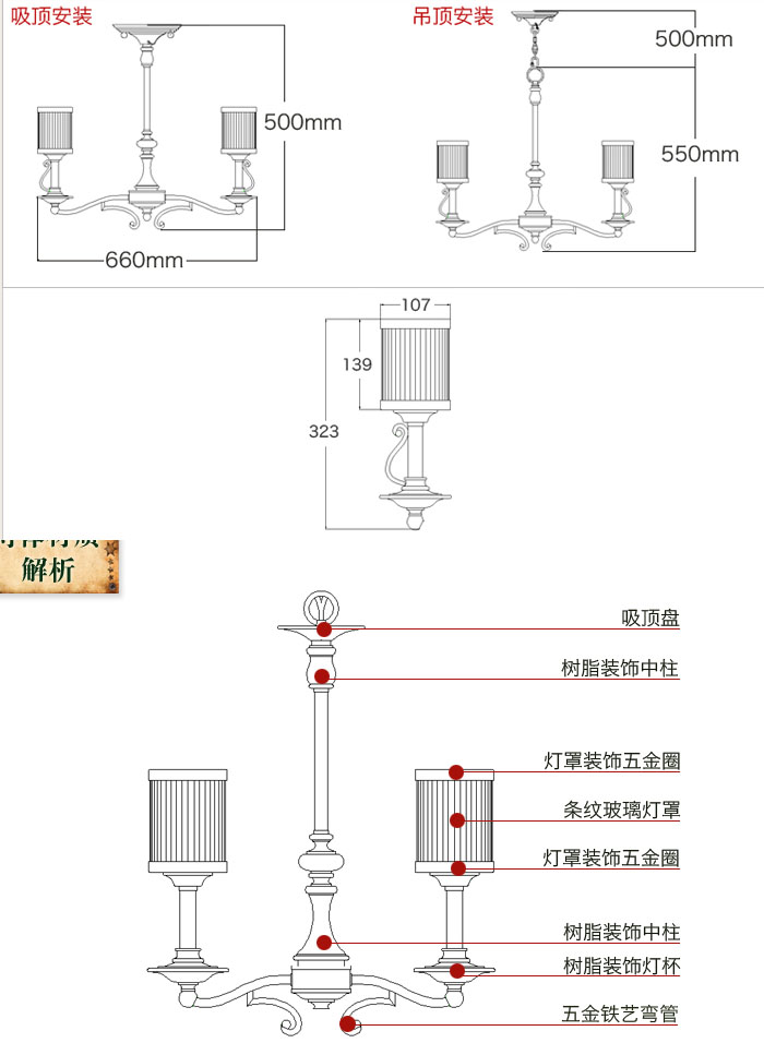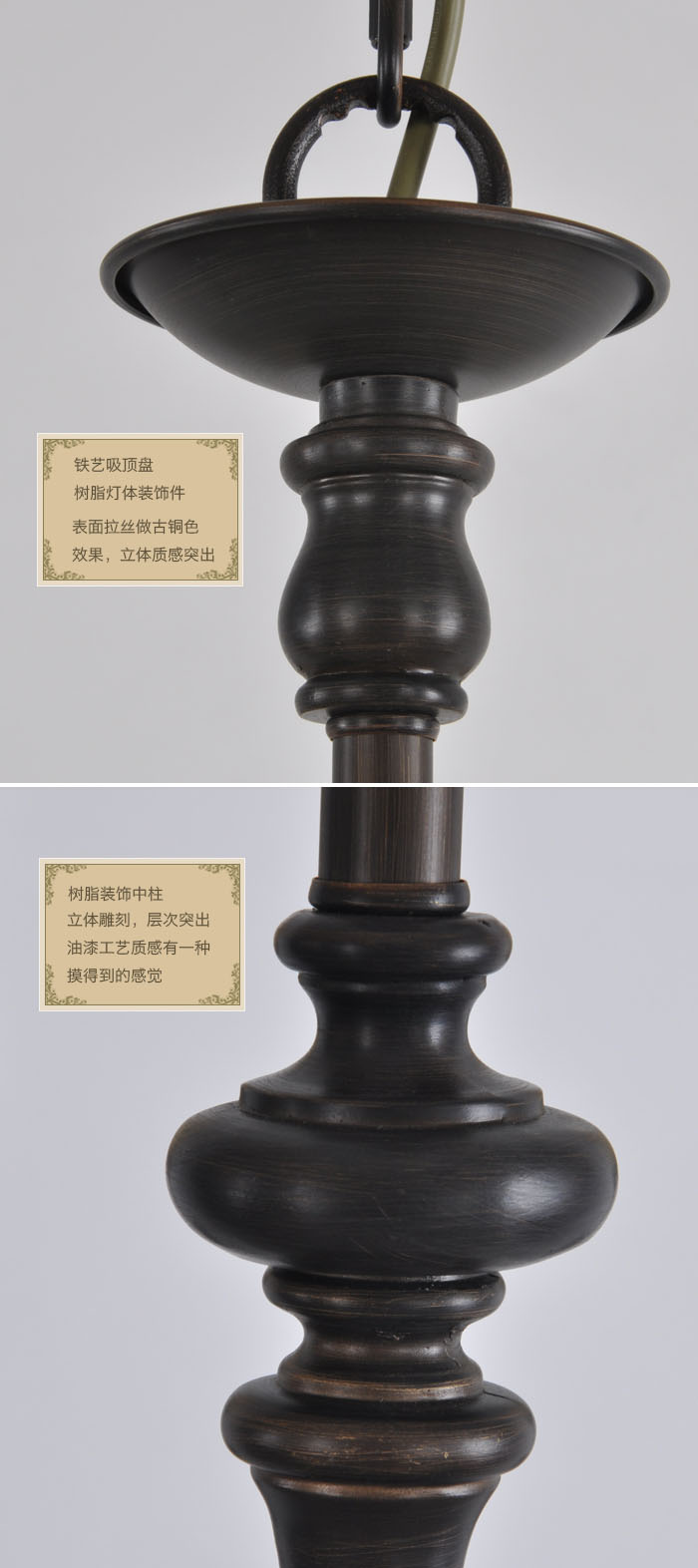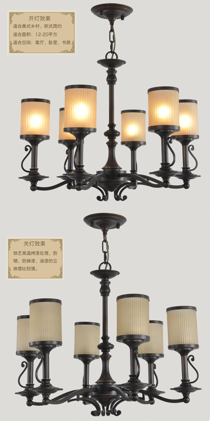 2.手工磨砂玻璃燈罩,仿古做舊,出來的顔色比較柔和,建議配黃光光源。