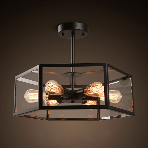 5Cgo 521805458876 美式鄉村工業創意復古餐廳咖啡廳燈具酒吧鐵藝愛迪生玻璃箱吸頂燈 LYP93400
