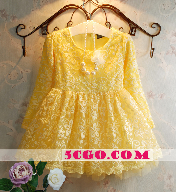 5Cgo 40971257054 女童連衣裙蕾絲加絨長袖韓版公主裙禮服 寶寶秋冬保暖兒童連衣裙裙裝 GSX59000
