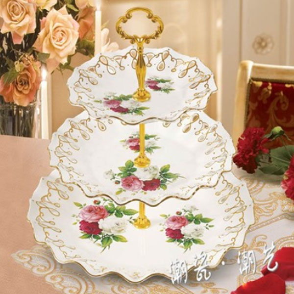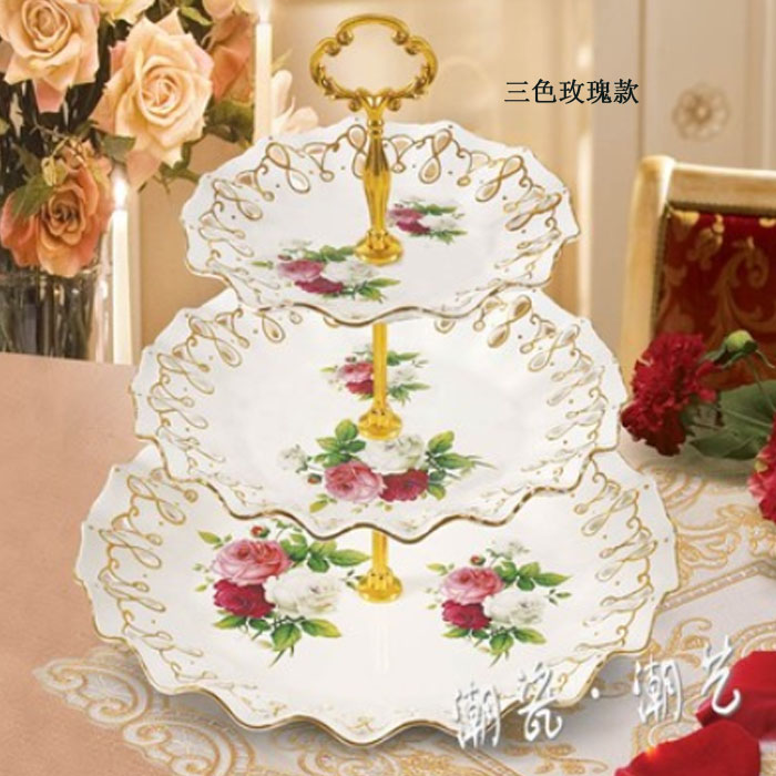 【規格尺寸】小:直徑19.5cm 高:3cm 中:直徑24.5cm 高:3.5cm 大:直徑31.5cm 高:4.4cm 完整尺寸:31.5cmX31.5cmX35cm 層距:11.5cm本産品顔色是米白色,屬強化瓷黃,更顯皇家貴族色調