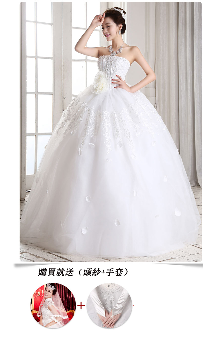 5Cgo 15216831714 新娘結婚禮服韓版婚紗禮服齊地大碼抹胸加厚綁帶婚紗 伴娘禮服伴娘服 GSX89200