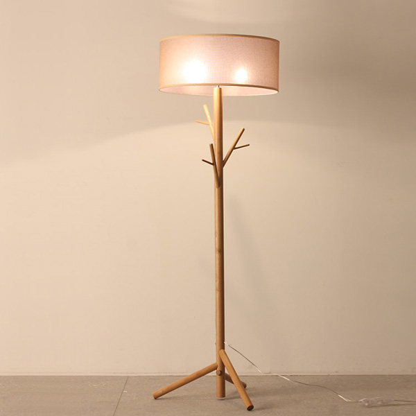 5Cgo 42902562911 落地燈日式鄉村創意衣架燈 設計師款北歐落地燈 實木書房麻布罩燈 LKM87010