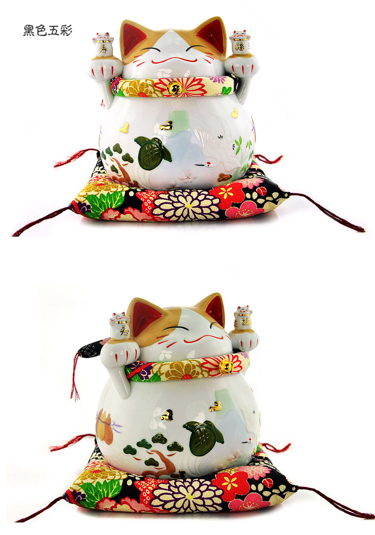 | 商品編號: | 9550753062 | | 商品名稱: | 雙手福壽貓 | | 商品尺寸: | 貓高約20cm,寬約19cm,厚約18cm(9.5寸);墊子23*23cm,厚約3-4cm | | 商品材質: | 高端陶瓷+純手工彩繪 | | 顏色分類: | 橘色五彩、黑色五彩 | | 注意事項: | 【附件】日式坐墊、圍脖、鈴铛 【寓意】貓貓壹手舉福,壹手舉壽,舉雙手代表招財招福,壽比南山。 【適合】 送長輩☆☆☆☆☆ 居家☆☆☆☆ 結婚☆☆☆ ★產品均為實物拍攝,由於光線顯示器等原因圖片顏色可能與實物有些偏差請以實物為准 | .jpg)      | |