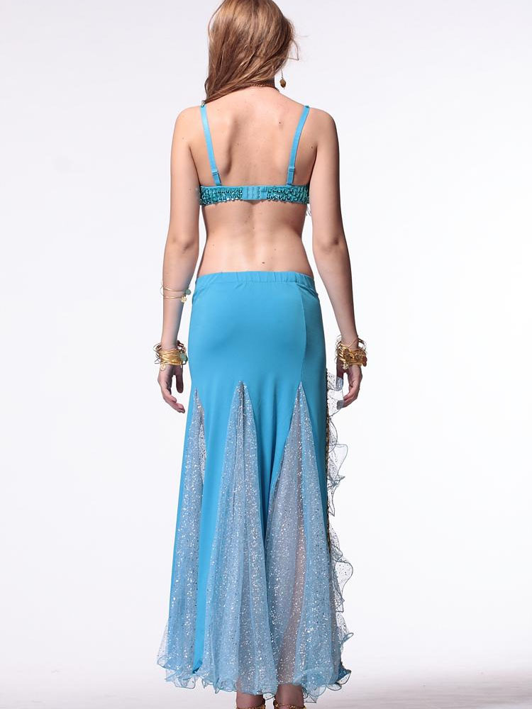 5Cgo 13585594892 新款肚皮舞表演服裝 服飾套裝(排鑽吊飾胸衣+細銀紗魚尾裙) MIK83100
