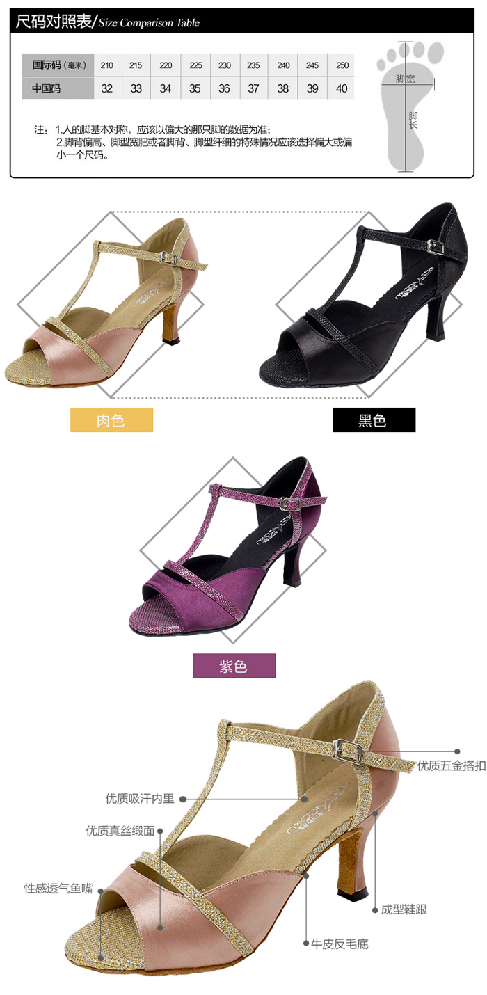 | 商品编号 : | 520385760322 | | 商品名稱: | 千嬌舞拉丁舞鞋成人高跟 廣場跳舞涼鞋女式夏交誼舞軟底 廣場舞鞋 | | 商品材質: | 緞。 | | 商品尺寸: | 33 34 35 36 37 38 39 40 41 42。跟高:7.5CM | | 顏色分類: | 黑色,肉色,紫色。(出貨不含其他飾品) 。 | | 注意事項: | ★均為實物拍攝,由於光線顯示器等原因圖片顏色可能與實物有些偏差、請以實物為准 。 ★尺碼為隨機抽取平鋪測量,允許有幾cm的誤差。 ★海外出貨物品,一律不退不換。 |