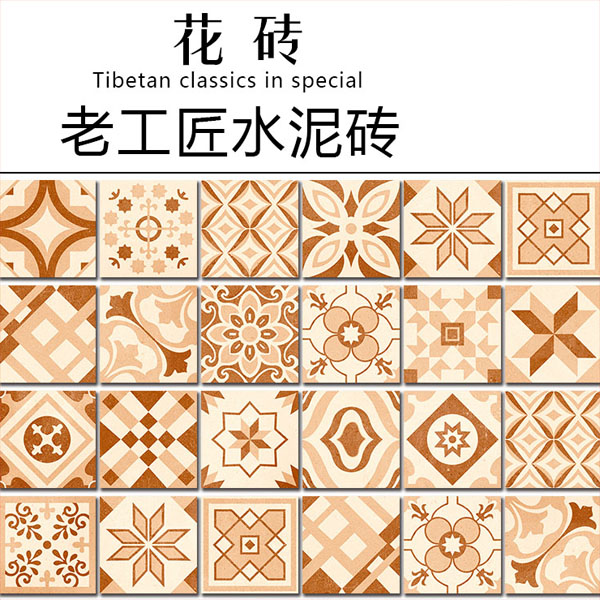 5Cgo 520678047059 藝術陶瓷磚仿古個水泥磚衛生間土黃色防滑牆磚復古磁磚地磚KTV包廂酒店會所走廊瓷磚貼地貼洗手間樓梯咖啡廳 CHX03700