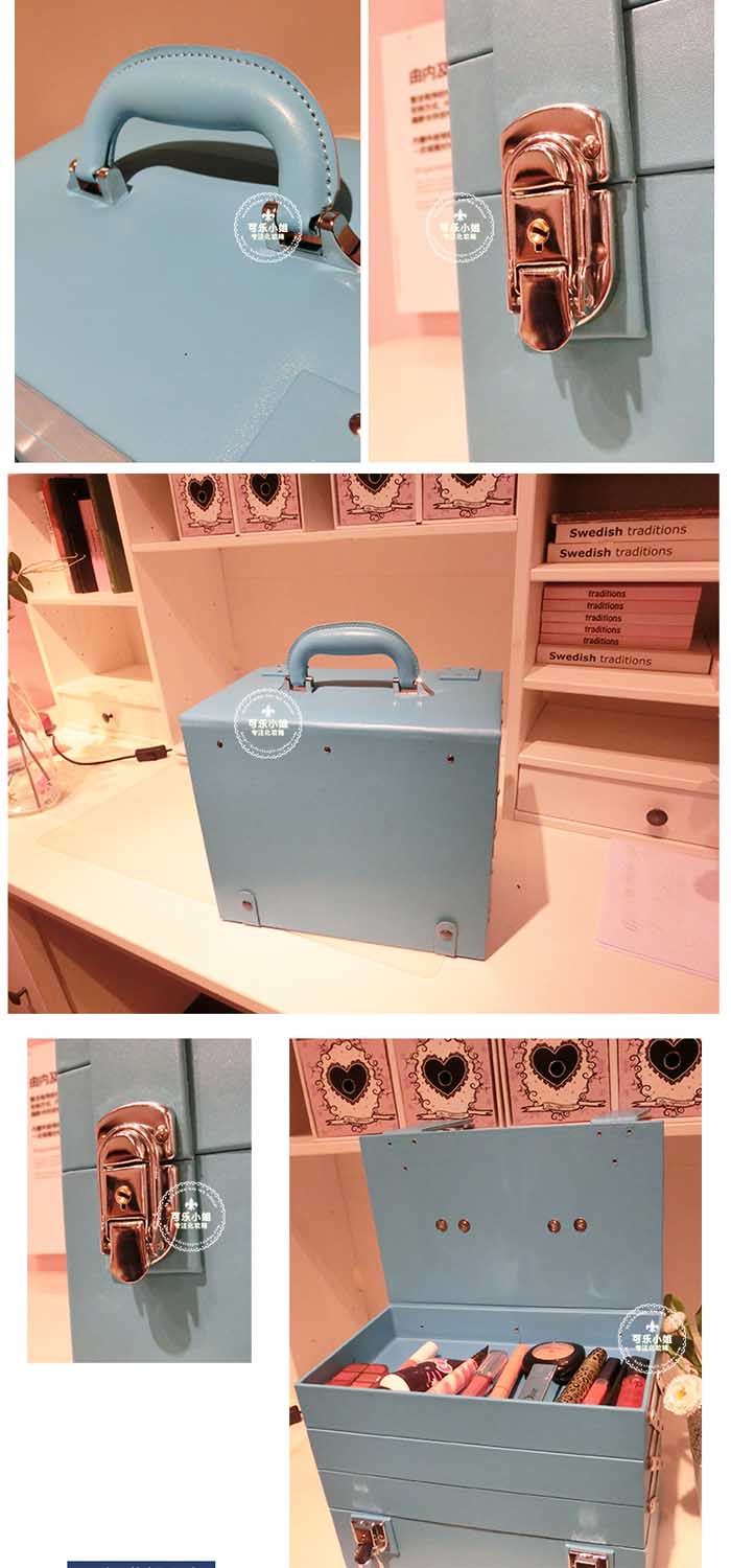 5Cgo 16208883190 星野韓版糖果手提專業化妝箱多層防水美容美甲箱紋繡箱粉藍 GSX94100