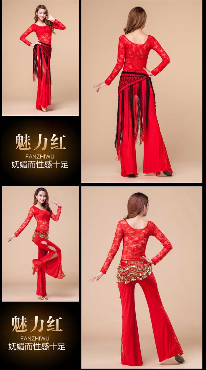 5Cgo 44354655037 長袖蕾絲肚皮舞練習練功服套裝 高檔演出表演服裝印度舞舞蹈三件套 gsx81100