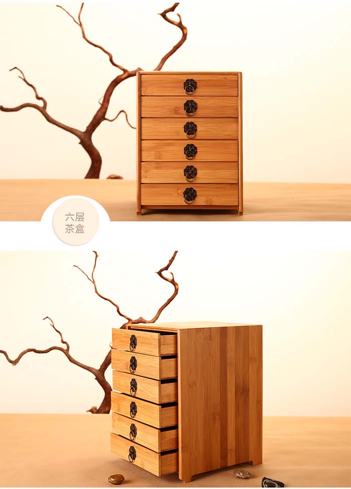 5Cgo 45794685504 普洱茶盒功夫茶具普洱茶櫃子茶莊儲藏櫃多層存茶盒竹制茶餅櫃 六層 LAY95200