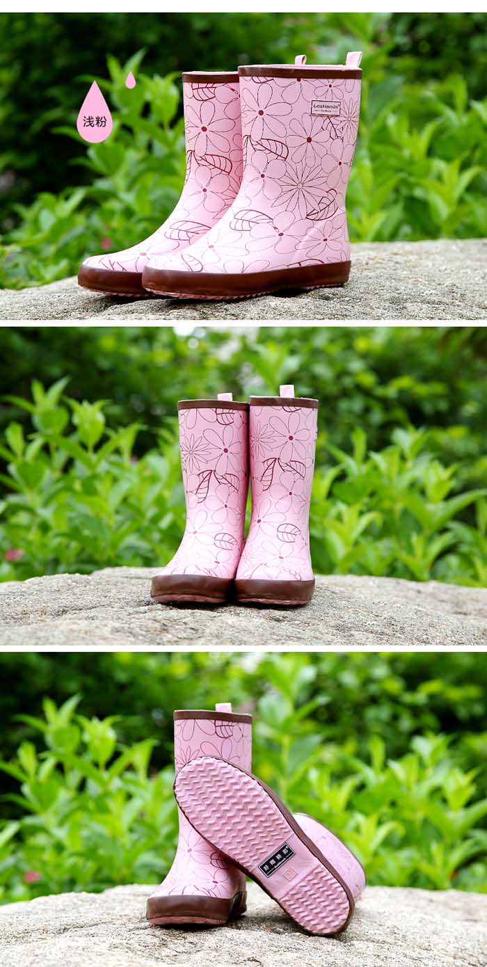 5Cgo 13060342004 天然環保橡膠女式中筒清雅花葉雨鞋女士雨靴2色 中筒女雨鞋雨靴 GSX97000
