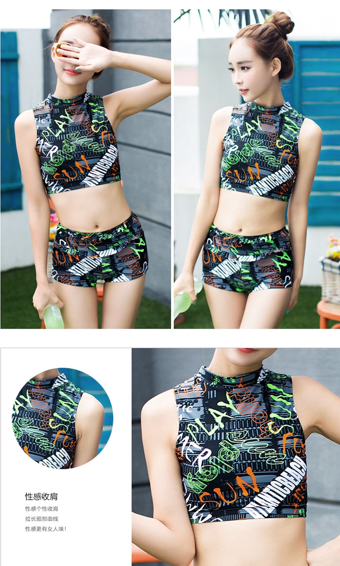 5Cgo 524323270565 沙灘泳衣女小胸三件套高領保守分體短褲裙式韓國高腰平角泳裝 GSX87000