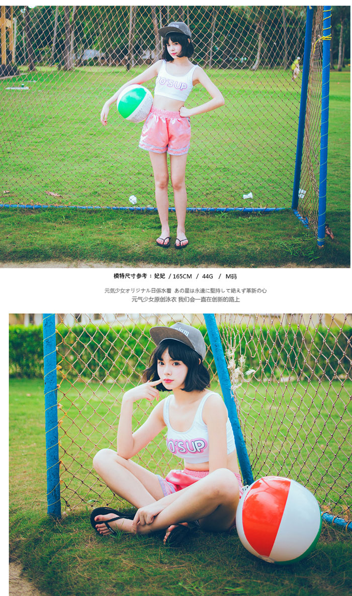5Cgo 527547550036 原創 元氣少女日系拳擊庫 運動風 保守方便泳衣 鋼托聚攏泳裝 GSX70100