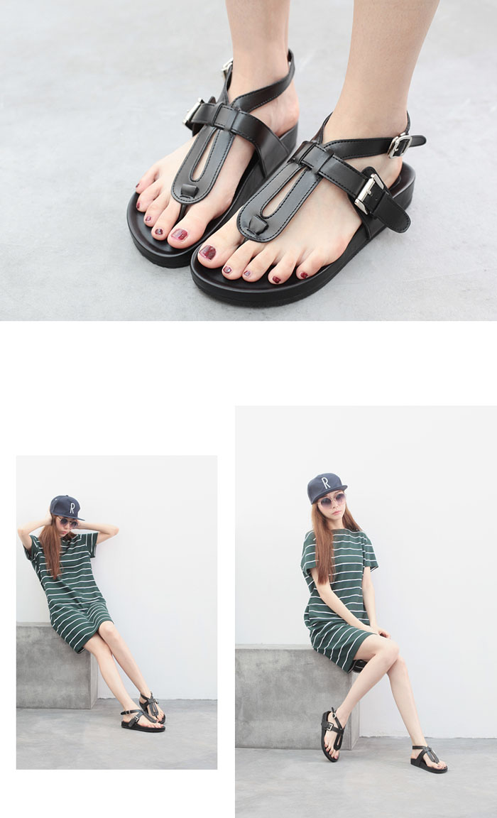 5Cgo 520080500270 歐洲站 一字式扣帶皮帶扣平底夾腳涼鞋女式 複古風羅馬涼鞋 單鞋 GSX83100