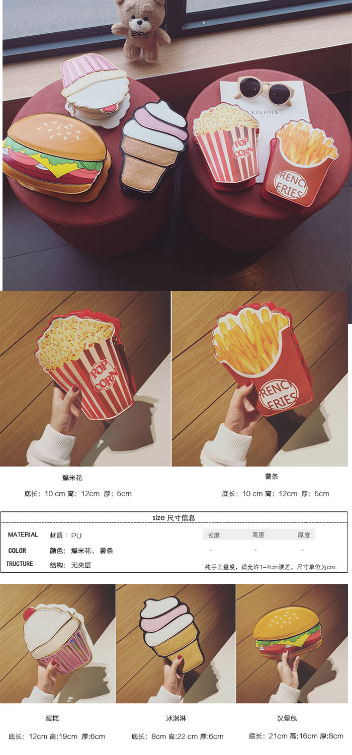 5Cgo 530378322695 韓國ulzzang卡通冰淇淋漢堡小包個性創意單肩斜挎鏈條包手機包包 GSX23000
