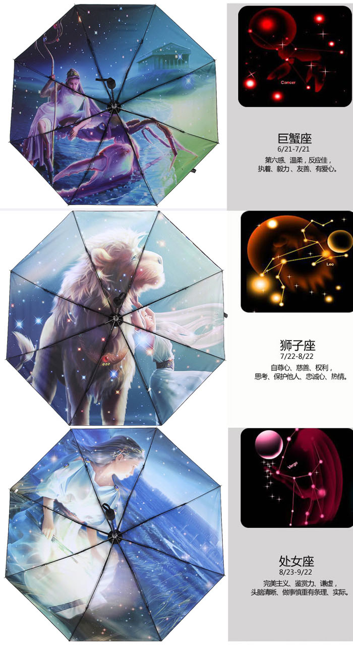 5Cgo 528330859493 小黑傘韓國創意12星座黑膠三折傘女士防曬防紫外線防風兩用晴雨傘 GSX92000