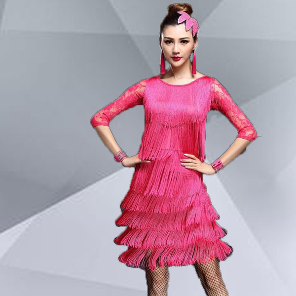 5Cgo 532585525118 成人拉丁舞服演出舞蹈服練功表演服連衣裙镂空新款演出服套裝 GSX83100