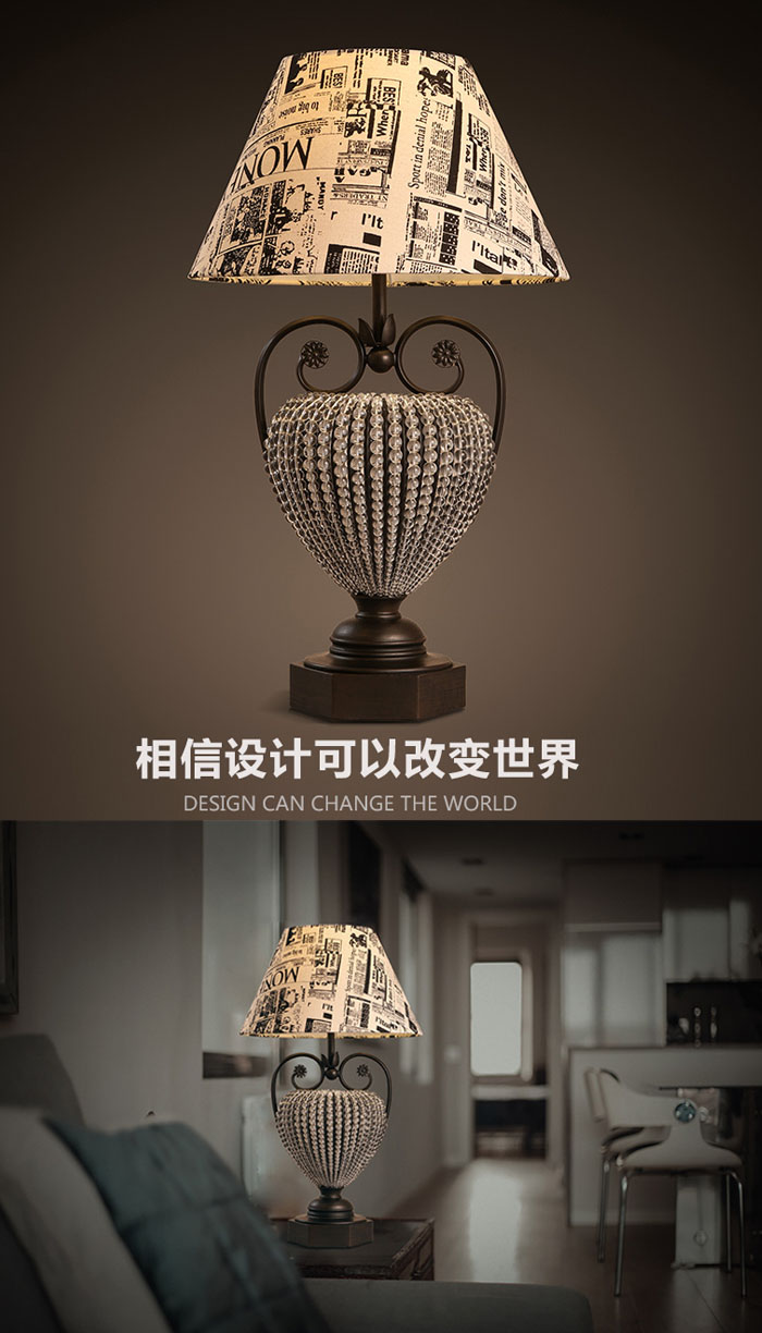 5Cgo 25259376961 現代簡約美式檯燈 歐式創意時尚水晶客廳書房臥室床頭台燈  可裝LED燈 SHM99300