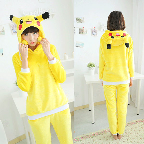 5Cgo 39971664721 秋冬法蘭絨連帽長袖睡衣卡通連體動物分體男女情侶家居服套裝 皮卡丘居家套裝 GSX85000