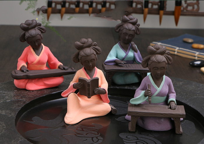5Cgo 525770578675 創意精品擺件彩砂陶紫砂茶寵琴棋書畫仕女茶具茶盤擺件茶藝配件 HZS34000