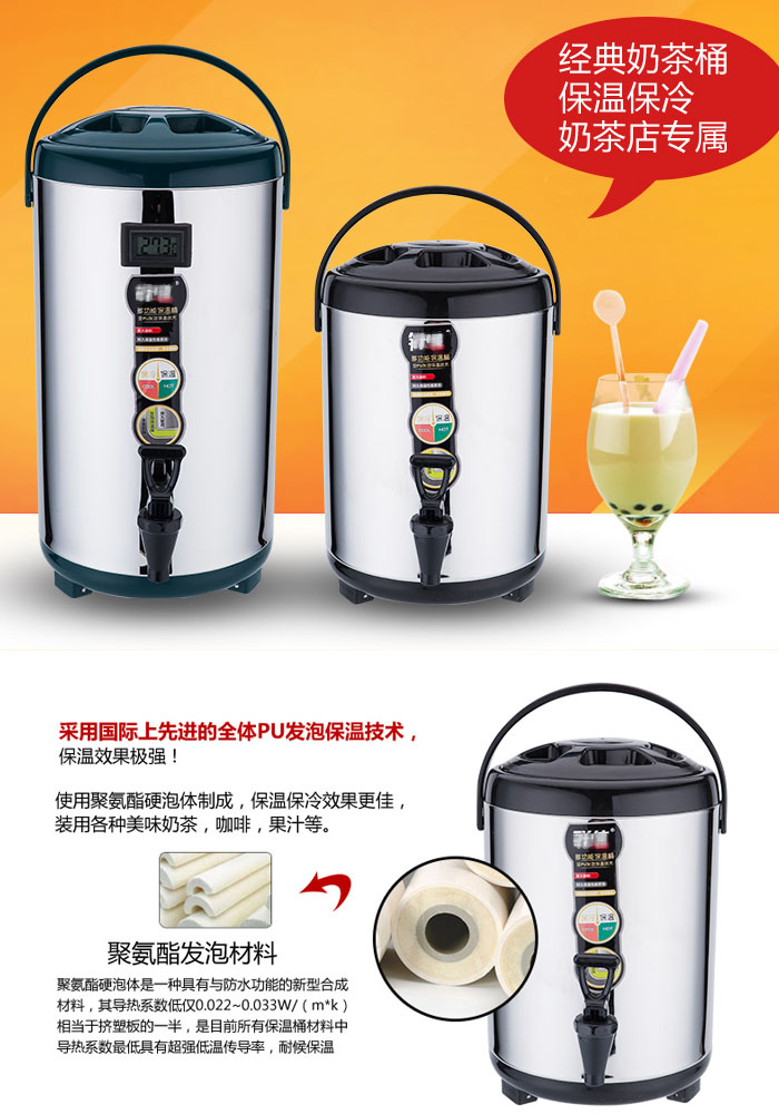 5Cgo 521998599256 商用保溫奶茶桶大容量不鏽鋼開水桶保溫桶豆漿桶果汁桶帶龍頭茶桶24小時保溫食堂餐廳飯店18L CHX92100_紅色