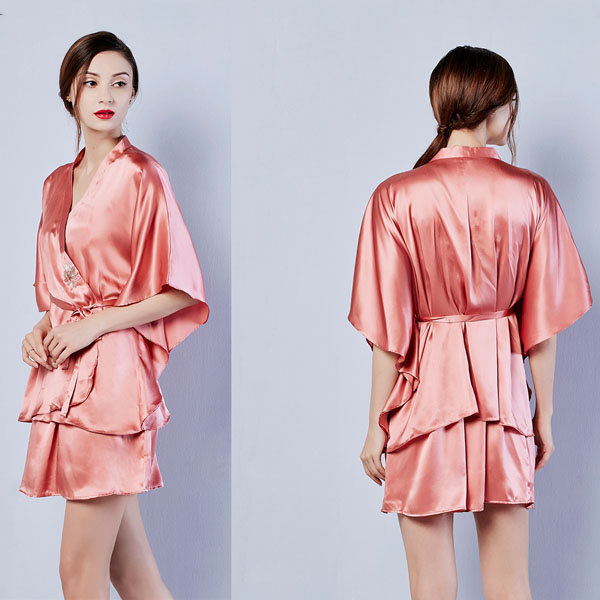 5Cgo 535623636446 真絲睡袍女士性感真絲兩件套裝短袖女士睡衣 蠶絲睡衣 GSX88300