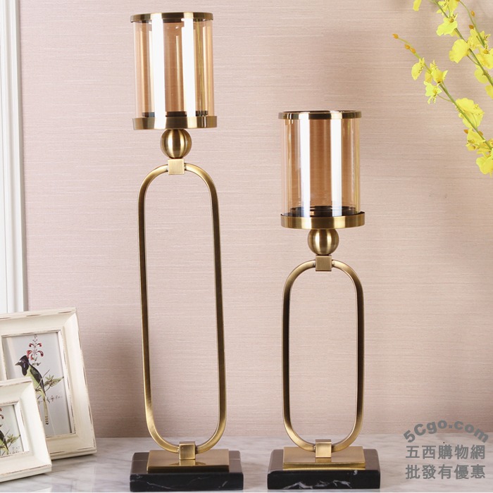 5Cgo 534347554013 歐式現代簡約美式大理石底座黃古銅合金玻璃婚宴尾牙燭光晚餐浪漫蠟燭台玄關設計師飯店咖啡店-小號 AGL29100