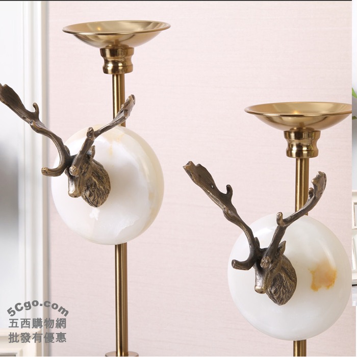 5Cgo 532867156696 美式中式簡約餐桌歐天然式玉石蠟燭台福祿鹿頭法式浪漫燭光晚餐裝飾品 -小號 AGL68300