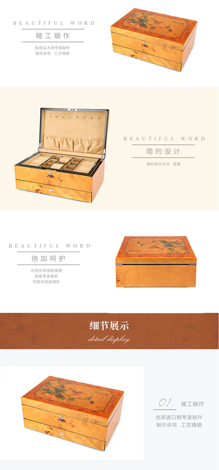 5Cgo 43721290159 藝術大師鋼琴漆樹瘤實木制做珠寶首飾盒收納儲藏展示盒箱子帶表位 GSX08900