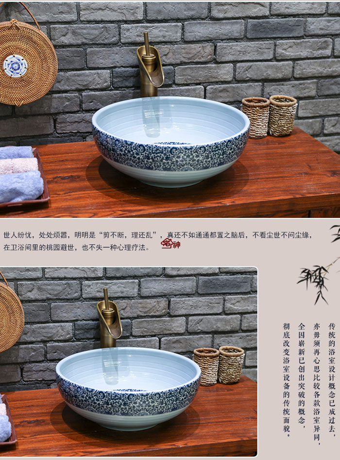 5Cgo 531623409333 景德鎮陶瓷台盆藝術盆青花圓形洗臉盆洗手盆洗面盆台上盆衛浴室衛生間酒店會所住宅裝潢設計 CHX86100