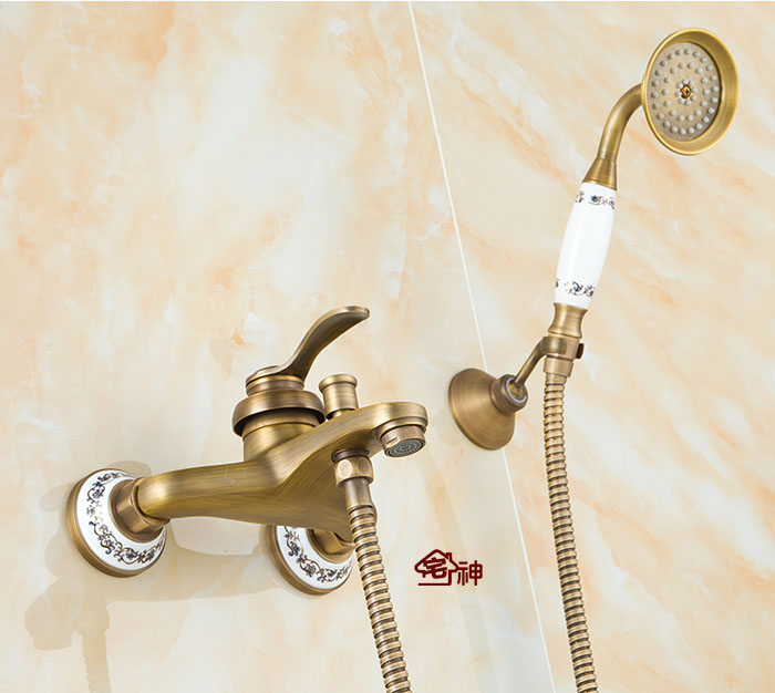 5Cgo 14547372860 歐式仿古淋浴套餐衛浴室復古銅冷熱龍頭手持花灑雙把雙控浴缸簡約青花小型戶沐浴間 CHX86200