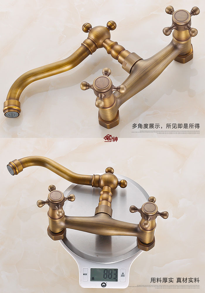 5Cgo 25947524749 仿古水龍頭全銅歐式復古浴缸龍頭入牆式可360°旋轉雙把雙控葫蘆形面盆龍頭高矮款式住宅裝修 CHX03100_葫蘆A款