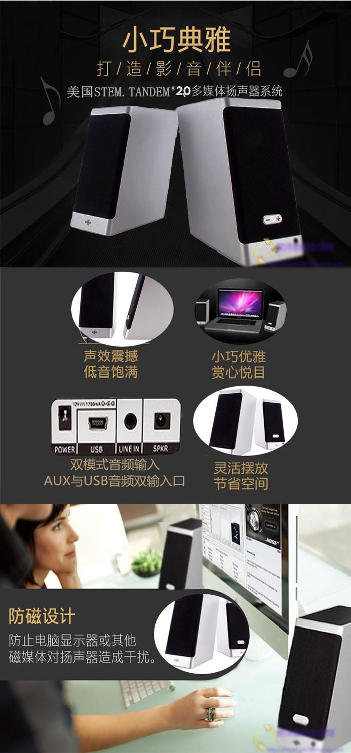 5Cgo 555740310365 美國 STEM.TANDEM 2.0有源多媒體筆記本臺式電腦桌面音響便攜式家用 PY93100