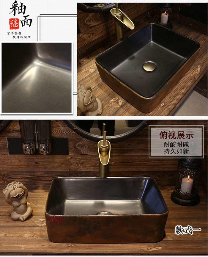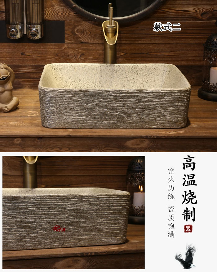 5Cgo 551871154604 中式復古石頭洗手盆台上盆方形陶瓷藝術盆衛浴仿古洗臉盆台盆衛浴室衛生間洗漱酒店會所住房裝修設計 CHX87200