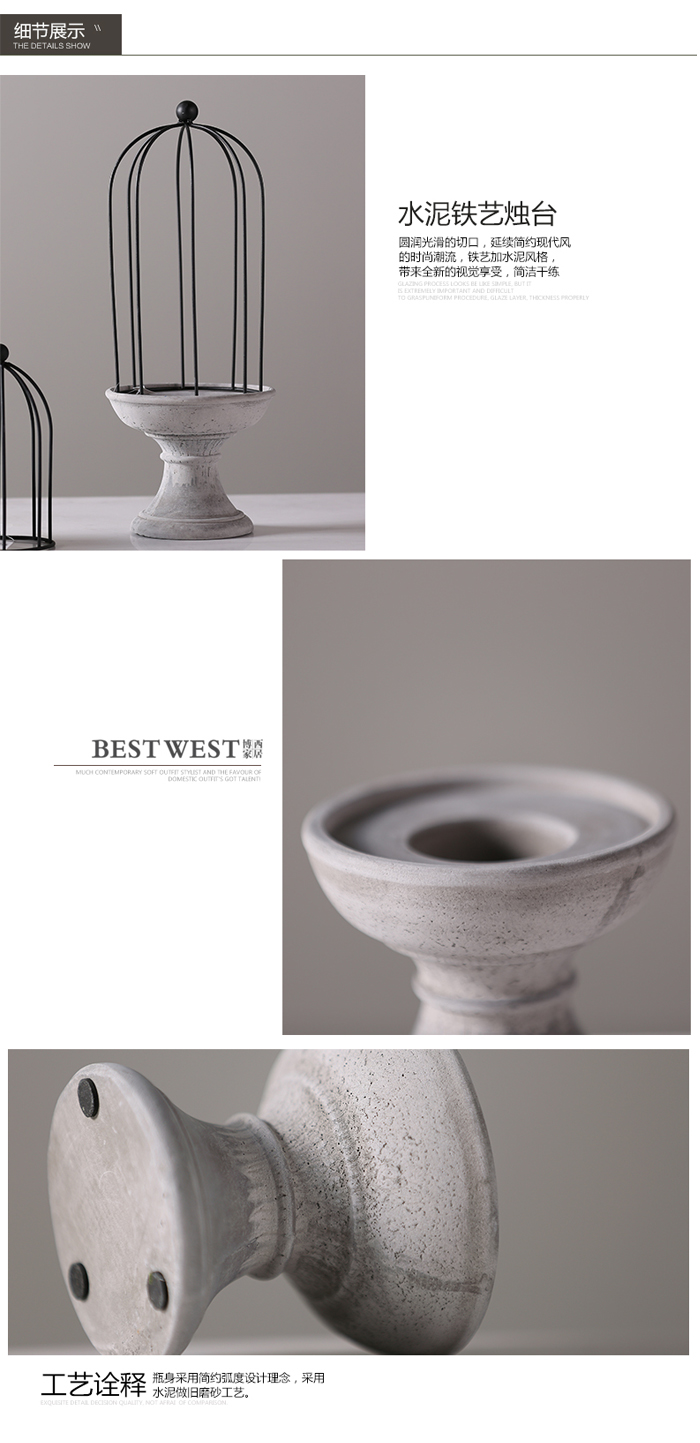 | 商品名稱: | 歐式後現代復古鐵藝燭台 玄關茶几書桌餐桌擺件酒店餐廳裝飾品婚慶蠟燭-高款 | | 商品尺寸: | 見下方說明 | | 商品材質: | 鐵、水泥 | | 顏色分類: | 歐式後現代燭台