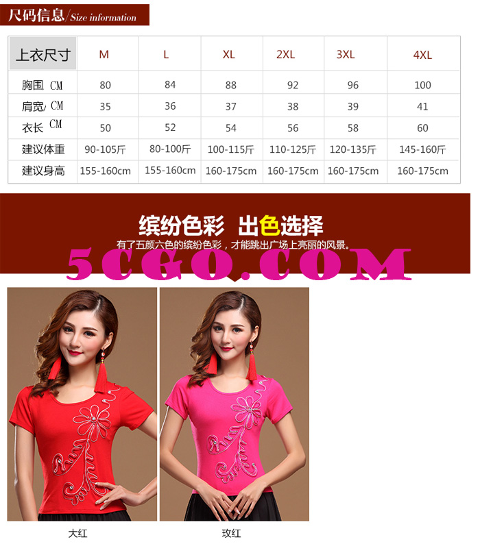 | 商品编号 : | 527543800863 | | 商品名稱: | 秋冬廣場舞服裝上衣新款拉丁舞服裝上裝舞蹈 手工繡花 上衣 | | 商品材質: | 純棉 | | 商品尺寸: | M L XL 2XL 3XL 4XL 5XL | | 顏色分類: | 大紅,玫紅。 (出貨不含其他飾品) | | 注意事項: | ★均為實物拍攝,由於光線顯示器等原因圖片顏色可能與實物有些偏差、請以實物為准 。 ★尺碼為隨機抽取平鋪測量,允許有幾cm的誤差。 ★海外出貨物品,一律不退不換。 ★本品不可機洗,不可甩幹,建議流水沖洗,避免浸泡。 |     |