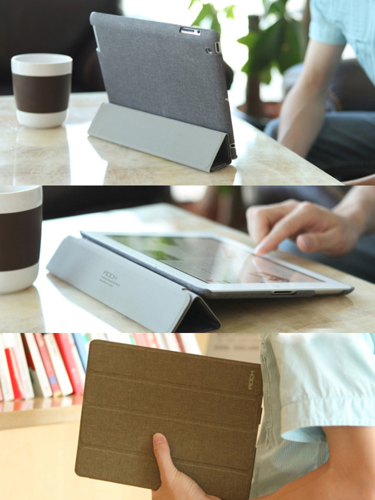 溫馨提示:此鏈結有兩個款式,“禦”系列和“恒”系列,親拍的時候看好哦~ 產品參數 | ROCK洛克禦系列 | 適用機型 | ipad4/3/2 | 產品材質 | 滌綸防水磨砂料,內襯納米纖維 | 產品規格 | 242mm*186mm*8mm | 產品特點 | -進口滌綸防水磨砂料,內裏為納米纖維,防刮,耐用 -具有智慧休眠,喚醒功能;使用耐高溫超強磁鐵,磁性好且永不消退 -一次電壓成型,邊緣硬化處理,極薄,極輕,完美貼合 -正面四折設計,追隨蘋果最新潮流設計,成就時下最流行款式 -全方位保護,正面背面一一覆蓋,因為更薄,所以更精准的孔位設計 |     | 產品參數 | ROCK洛克 iPad4/3/2恒系列 | 適用機型 | ipad4/3/2 | 產品材質 | PU材質+內襯纖維 | 產品規格 | 242mm*186mm*8mm | 產品特點 | -進口PU,超級纖維,紋路平整,手感細膩,防滑 -內嵌合金鋁板,使用耐高溫電壓一次成型,極薄,極輕 -具有智慧休眠喚醒功能,使用耐高溫超強磁鐵,磁性好且永不消退 -正面四折設計,能立起,方便影音娛樂,全方面保護,正面背面一一覆蓋 -皮套側面人性化設計便於機器操控,保留了攝相頭、耳機插口、開關機按鍵音量大小鍵、靜音開關鍵、充電口的外露,完美解決了其他同類遮擋現象 -時尚、流行、使用舒適、好的視覺感受,符合美的搭配 |   | 可選顏色  | |