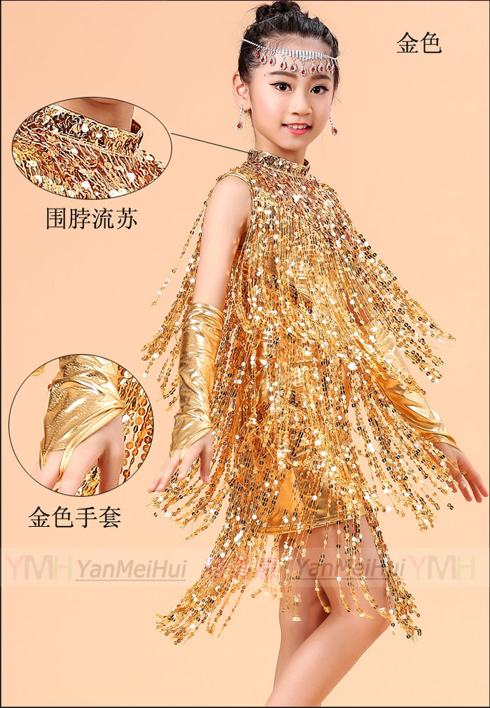 5Cgo 529255709584 兒童拉丁舞演出服女童拉丁舞爵士連衣裙比賽表演服裝新款亮片流蘇裙舞台裝 HJT56000