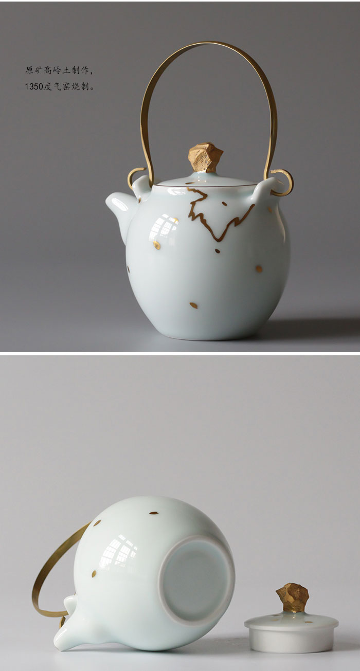 5Cgo 562489529141 景德鎮手工描金銅提梁小功夫茶壺創意影青提梁壺禮品茶具茶壺可加購功夫茶具 QYM92200