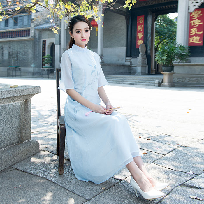 5Cgo 547946014342 中式禅意民族風禅茶香道仙女範文藝複古旗袍茶道香道茶藝師服裝夏季連衣裙 HJT56100