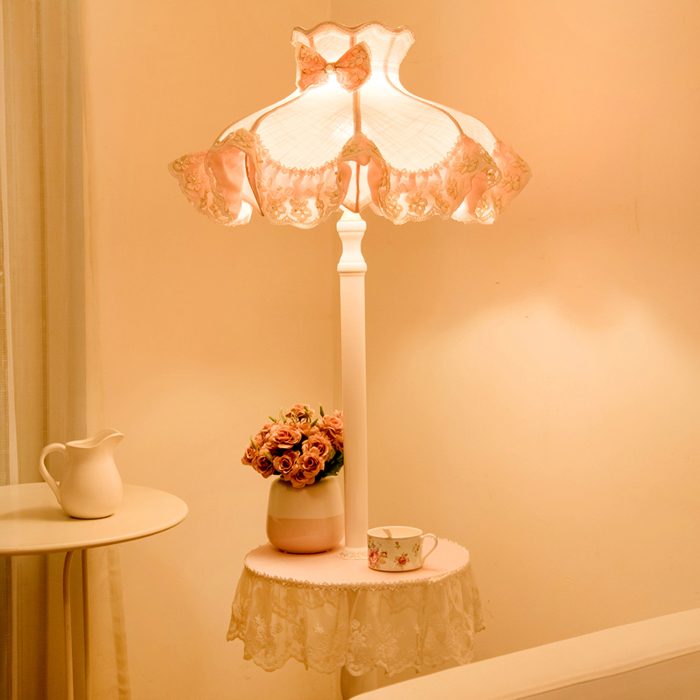 5Cgo 553712831855 歐式簡約創意田園落地燈高腳立式台燈客廳置物架落地燈臥室女孩兒童房床頭公主粉燈LWY99200