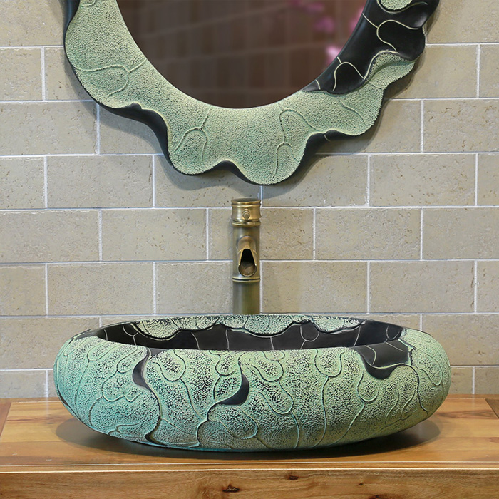 5Cgo 540902580943 中式創意復古酒店浴室橢圓形洗臉臺上盆廁所洗手盤家用個性洗漱池 HSL88200