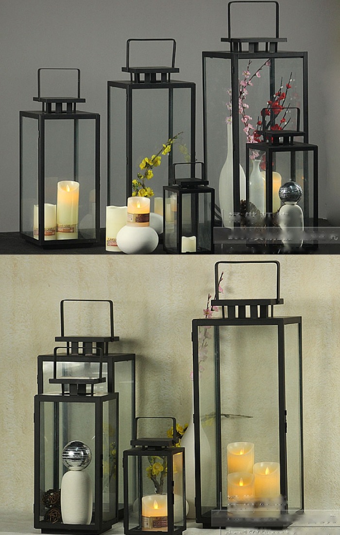 5Cgo 569425378307 中式簡約現代復古鐵藝玻璃防風蠟燭臺庭院戶外餐廳咖啡館裝飾燈婚慶可配電子蠟燭燈 AGL00300