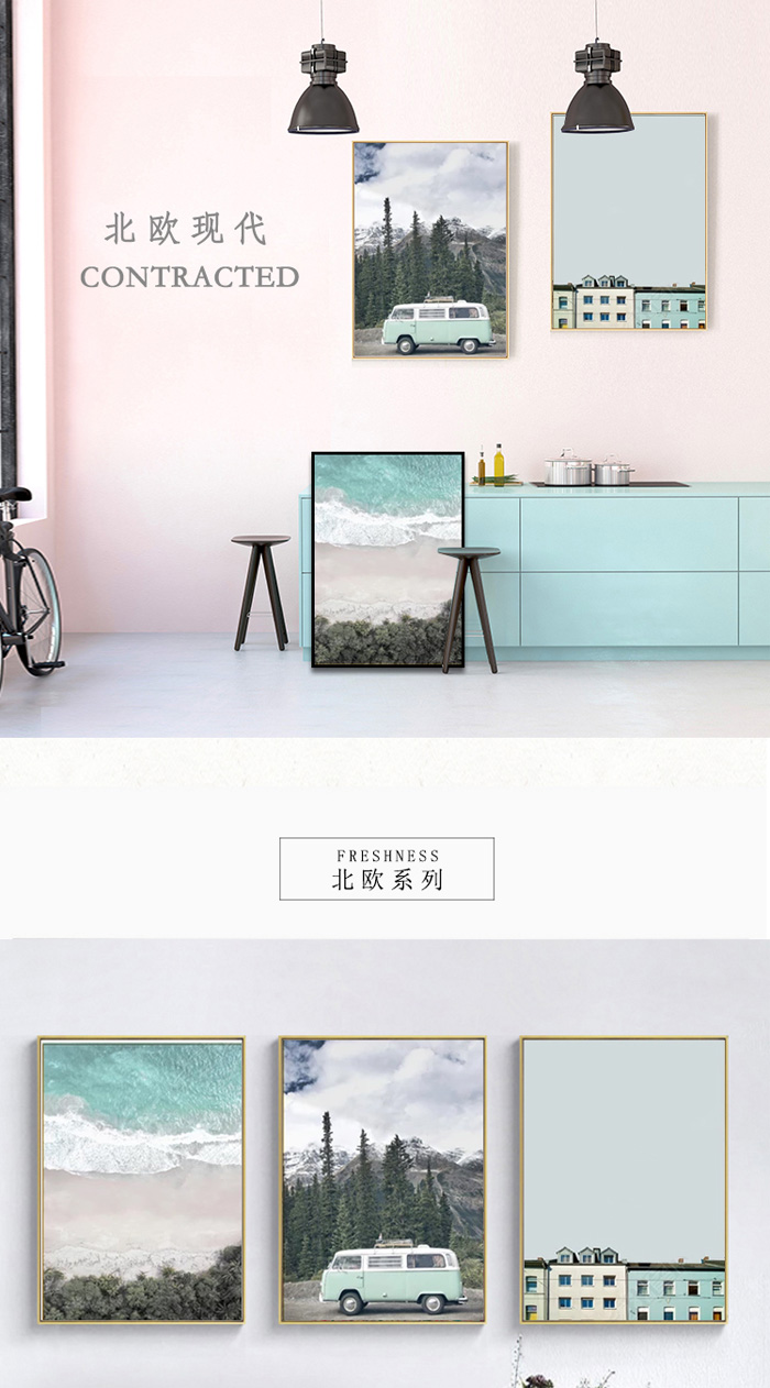 5Cgo 567560855935 北歐風格客廳裝飾畫沙發背景墻掛畫現代間約風景三聯畫小清新壁畫 HSL82300