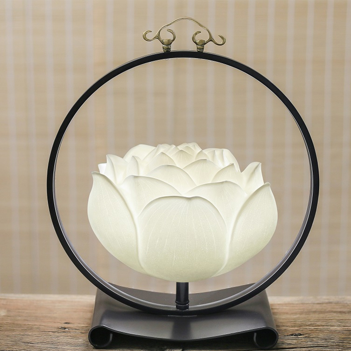 5Cgo 565335683948 現代簡約創意個性檯燈新中式燈飾客廳書桌臥室床頭燈鐵藝荷花裝飾創意溫馨檯燈燈具LWY86300
