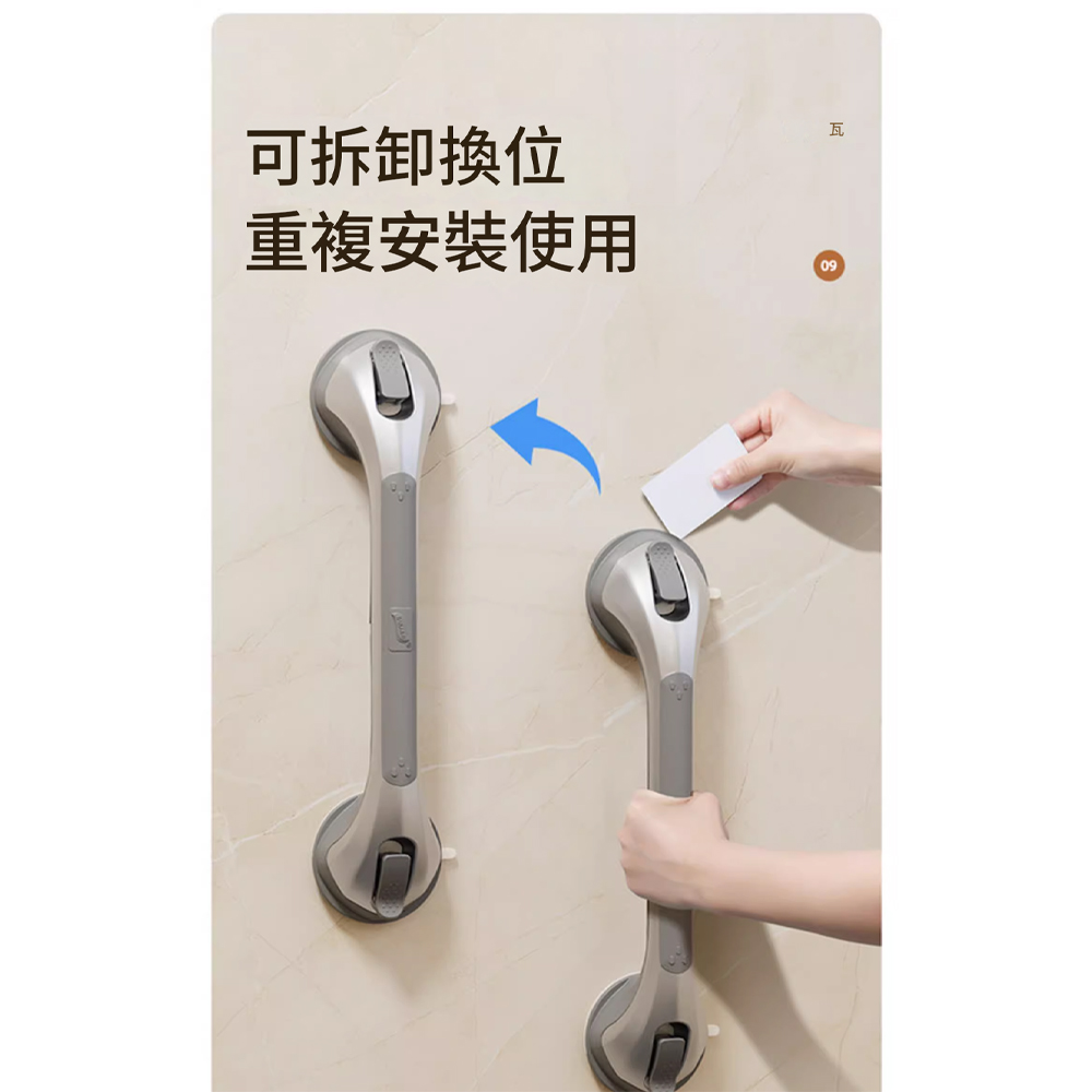 5Cgo【樂趣購】衛生間浴室防滑扶手免釘吸盤安裝牢固便攜可拆卸承重11KG銀色灰色老人廁所扶手t619642516240
