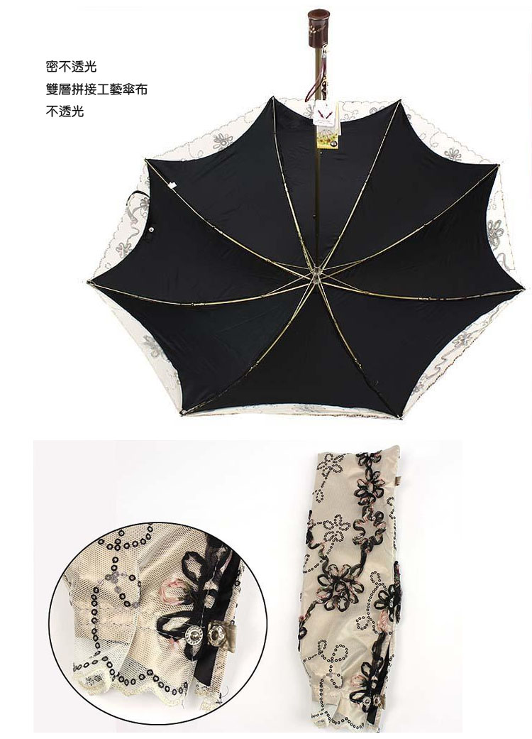 5Cgo 23166800641 新款綴美洋傘 二折雙層立體太陽傘 盤花防紫外線防曬遮陽傘 雨傘 MIK54100