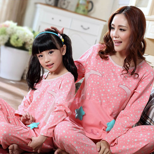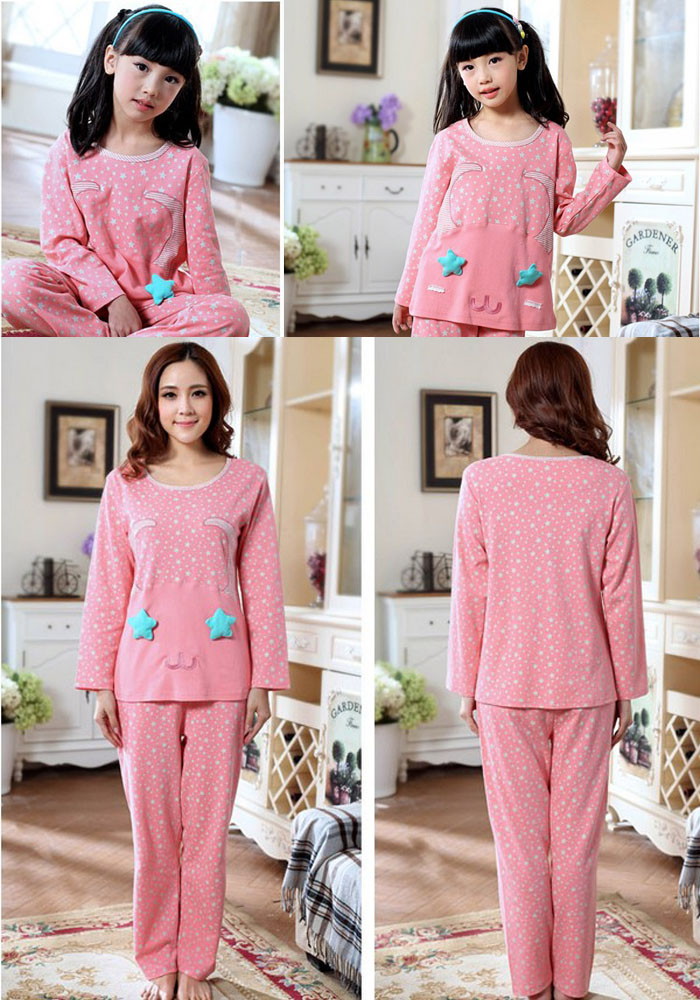 5Cgo 372355247522014春季新款親子睡衣針織棉長袖家居服套裝小星星母女 CHX58000