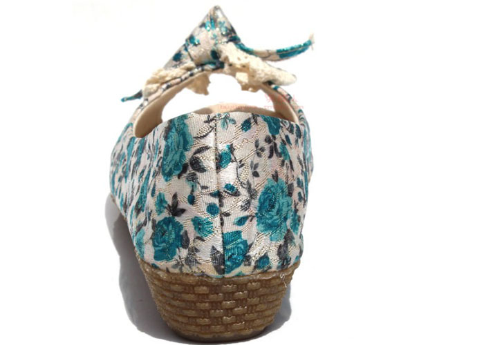 5Cgo 18003533010 北京布鞋女款涼鞋提花民族風坡跟鞋蝴蝶結碎花魚嘴鞋 ZXJ57000